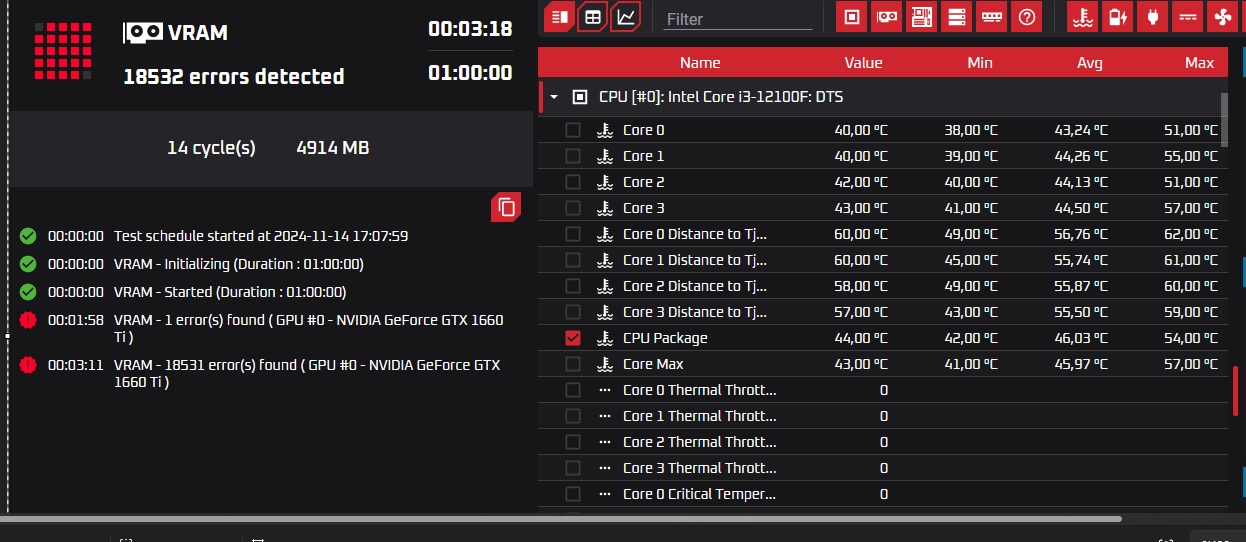 Oyunlarda droptan hareket dahil edemiyorum FPS değerleri 20 30'larda takılıyor. Format attım gene düzelmedi 3 4 dk da bir sürekli drop giriyor OCCT ile test yaptığımdada VRAM hatası veriyor. Kart Dragos GTX 1660 Ti markanın ne kadar kötü olduğunu biliyorum ama mecbur almak zorunda kaldım. Sorunun çözümü kartı değiştirmek mi tamir ettirmek mi?