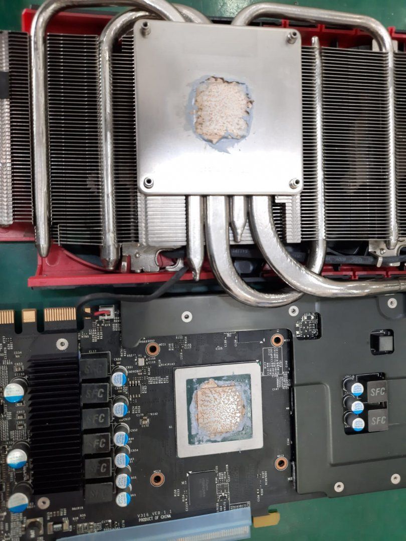 Kart hem ısıl işlem görmüş gibi çünkü flax izleri var çip etrafında ve altın alışımlı thermal macun kullanılmış gibi görünüyor yanlışım varsa düzeltin lütfen.