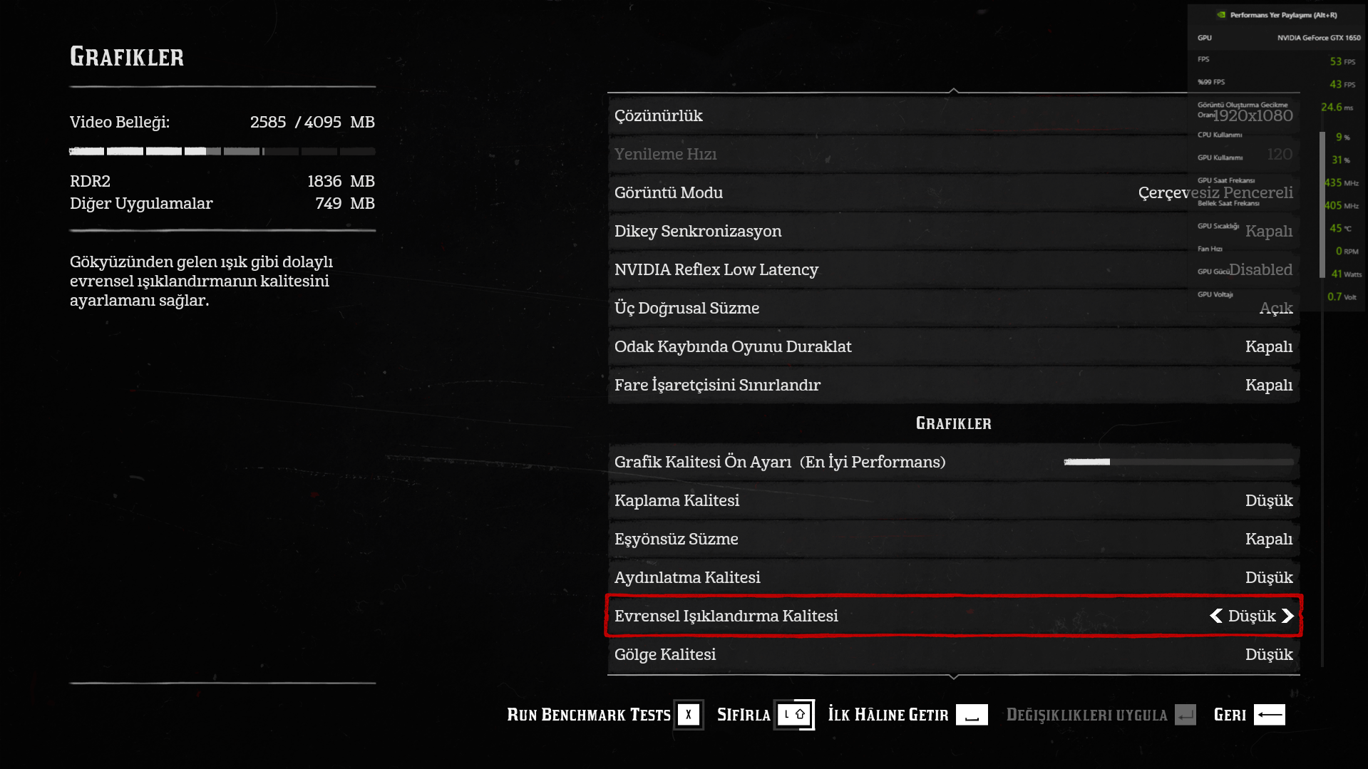 Eskiden aynı sistemimle RDR2 gayet rahat oynuyordum, bilgisayar uzun süre format yemeyince kasmaya başlıyordu, format atıyordum düzeliyordu. Geçenlerde gene format attım bugün RDR2'yi indirdim değil eski ayarlar daha daha düşüğünde bile oynayamıyorum kasım Kasım kasılıyor