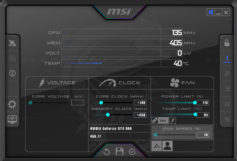 STRIX versiyonu ile 60 derece AAA oyunlarda (+140 core/+450 Memory OC).