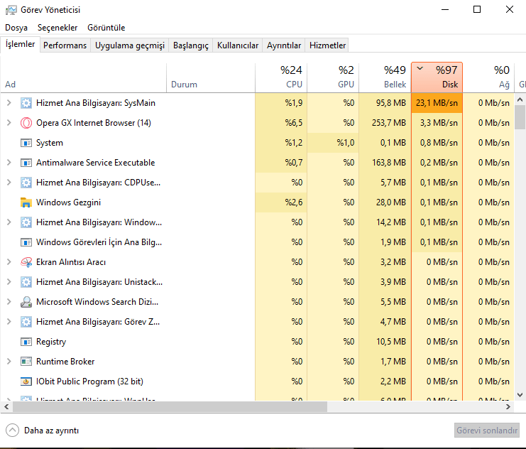 Disk kullanımı daima çok yüksek. gerek açılınca, gerekse bilgisayarı günlük olarak kullanırken, oyun oynarken ve bu beni bitiriyor artık. Bilgisayarım hem 3 dakikada açılıyor, açıldıktan 10 dakika sonra bile kendine gelemiyor. Bunun bir çözümü var mıdır?