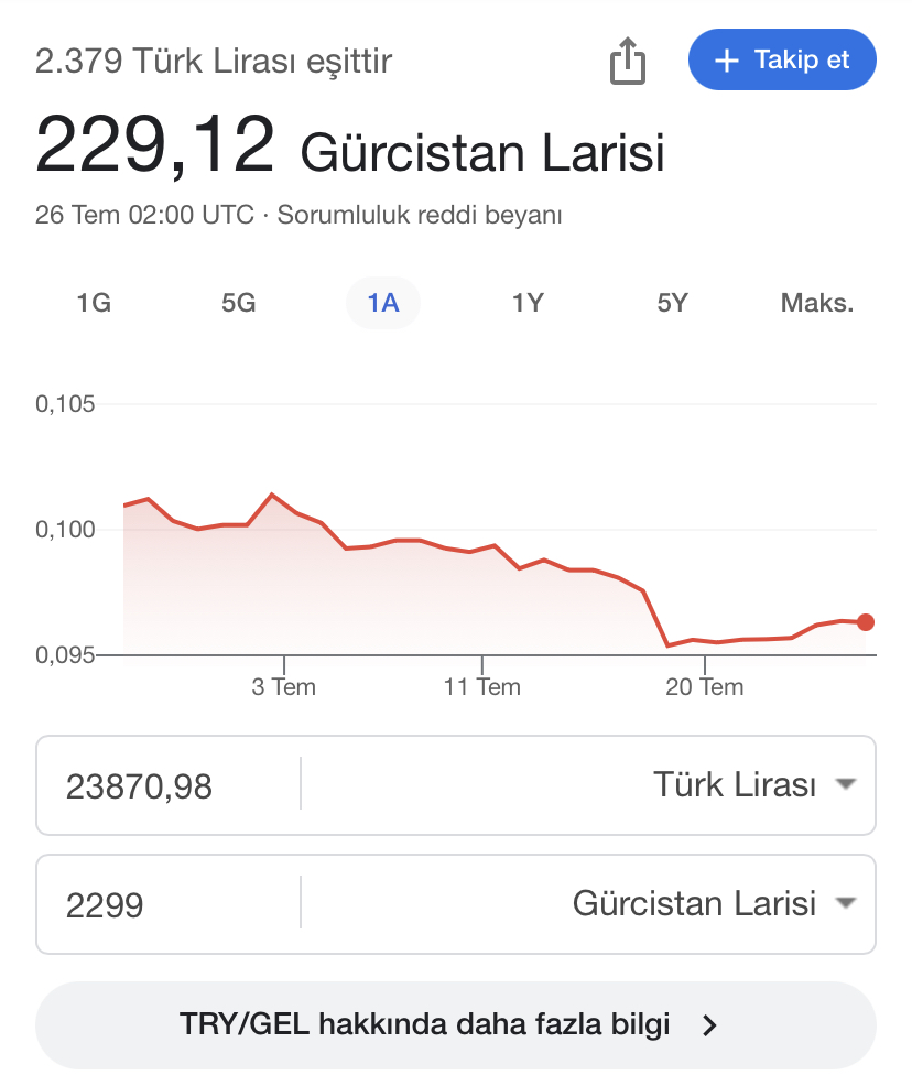 Ayrıca döviz kuru fotoğrafında kur çevirisini yanlış yapmışzın 2379lari yerine 2379 TL'yi lariye çevirmişsin.