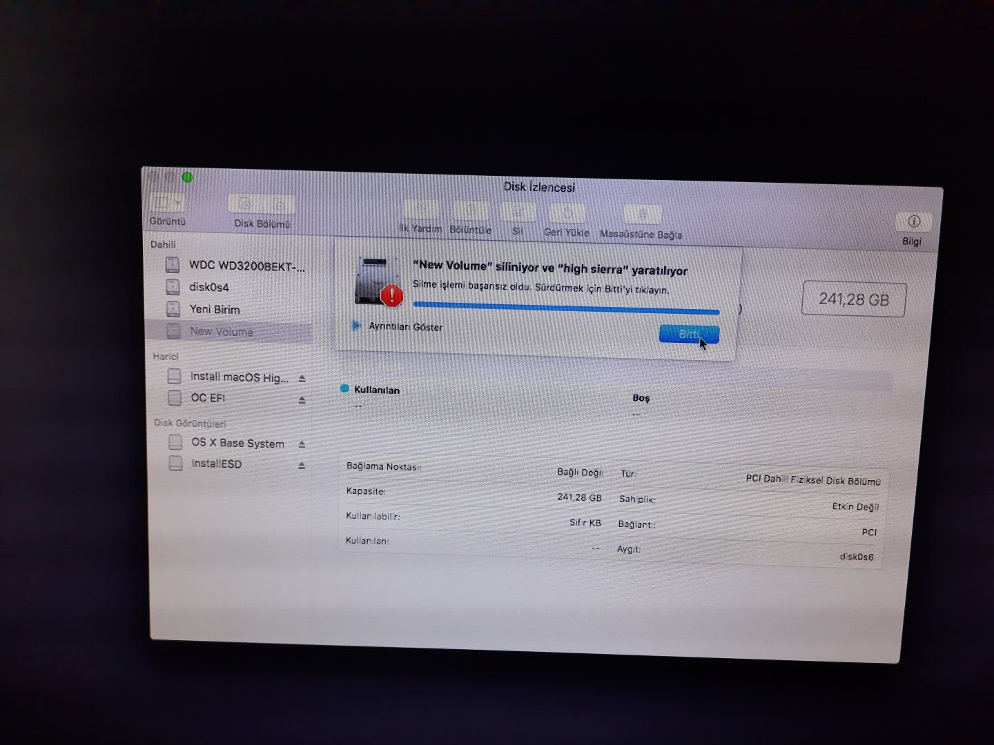Hocam paragondan bölün Apple hfs formatlamayın onu kurulumda formatlacaksınız ve Apple hfs eski sistemlerde kaldı APFS yapacaksınız Disk İzlencesi'nden.