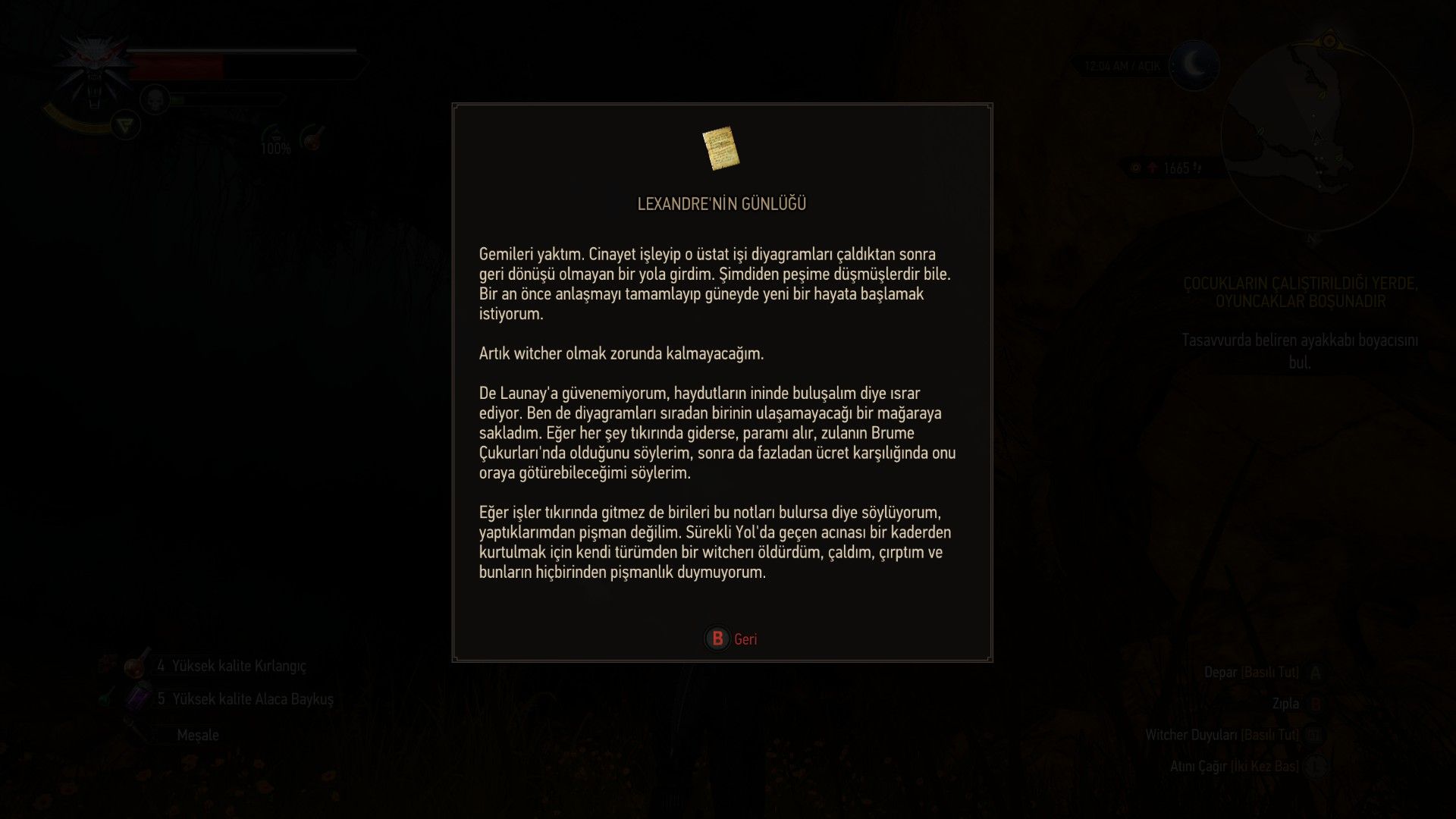 Bu ekran görüntüleri benim oyunumdan bu arada, ve gönüllü Türkçe yama kullanıyorum. Neyse konuya dönelim, zaten hatırlarsanız Lambert da "içine edeyim böyle kaderin, witcher olmaktan nefret ediyorum" diyordu...