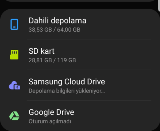 Mesela ben bir film indiriceğim.Hangisine indireceğimi soruyor mu?Hayır. Alta bulunan SD Kart durumunda, "Takılı Değil" yazan yerde 16 GB yazacak.