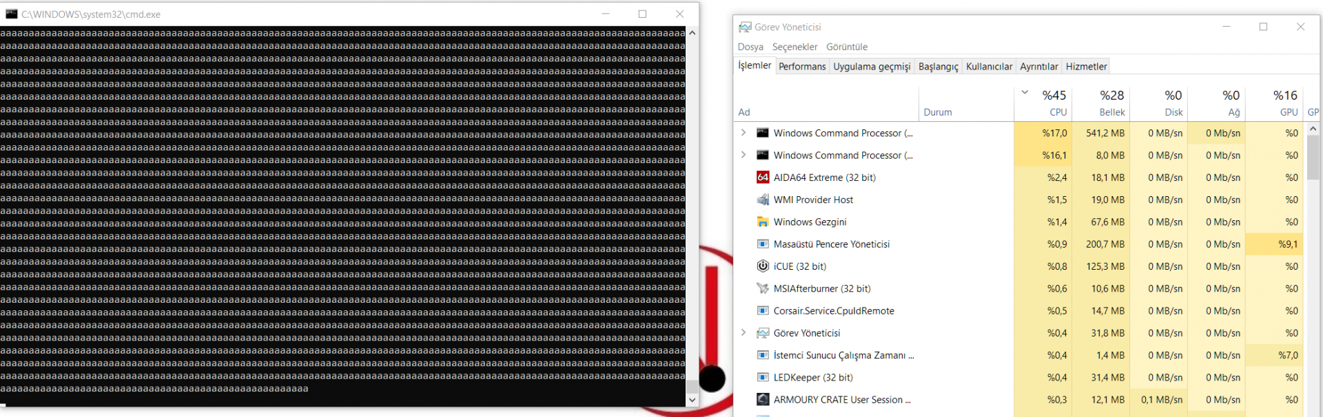 Not defterine harf basıp kopyalıyordum, bayağı uzun olmuştu. Bunu CMD üzerinden çalıştırmak aklıma gelmişti. Bilgisayarda 2 GB RAM vardı. RAM kullanımı %90'ı geçmişti. Bilgisayarın RAM'ini 4 GB yapmıştım. Aklıma bu dosyayı çalıştırmak geldi. RAM kullanımı yine %90'ın üzerindeydi. Bilgisayar donmuştu. Denemek isteyen olursa diye buraya atacağım. Deneyen olursa sonuçlarını yazarsa sevinirim.