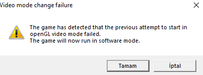 Oyunu software modunda başlatamıyorum. Regedit üzerinden software dosyasını yanlışlıkla sildikten sonra sürekli bu hatayı alıyorum.