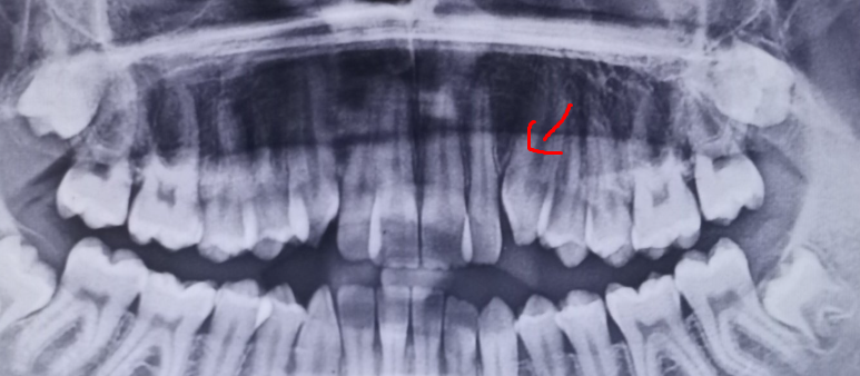 Şu dişiniz sanki içten çürümüş gibi gözüküyor, bu çürük olabilir.