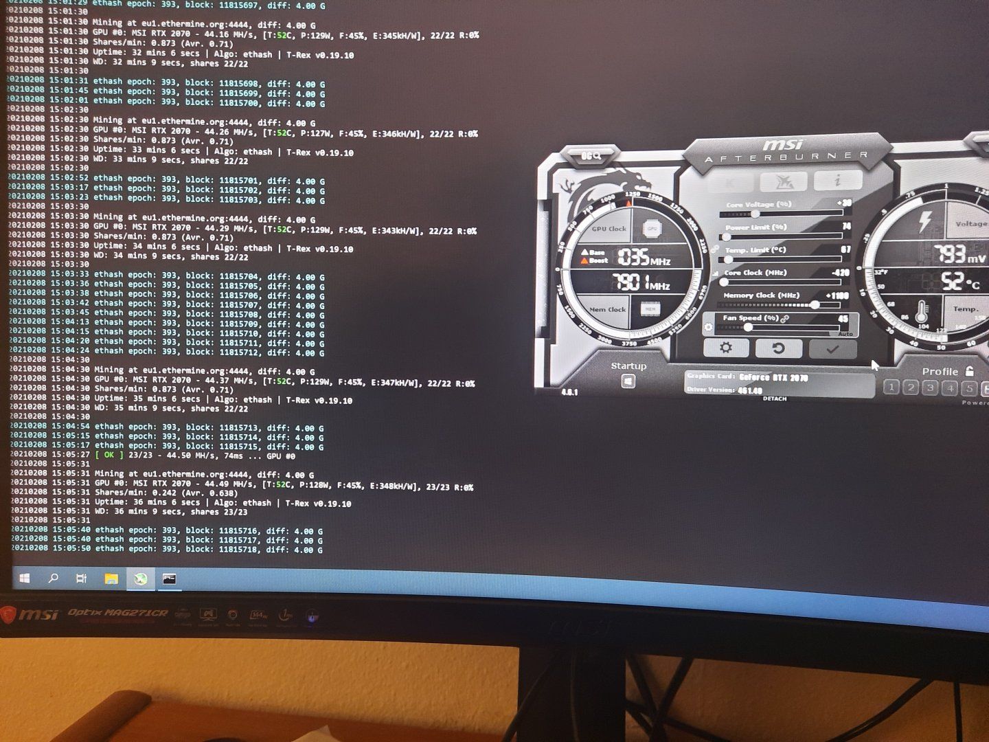 Tavsiyeniz üzerine t-rexe gectim kopma yaşamıyorum ama rog strix 2070 ile average 34 mh/s civarında aynı 2 kartta bukadar fark olması pek normal değil gibi oc bukadar farkettirmez diye düşünüyorumAfterburner ile Power limit 74 Core voltage +15 Core clock -425 Memory clock +1100 fan %50 ayarlarda ben hem claymore hem t-rex ile 44.5 Mh/s hızında kazım yapıyorum. Kopmaların için birşey diyemeyeceğim belki upload hızınızdan dolayı kopma olabiliyordur. Bende de oluyor ama tekrar bağlanması 3-5 satır sürüyor. Kopmalar için t-rex deneyebilirsin bugün bikaç yerde claymore için kopma sonrası bağlantı problemi olan birkaç konu gördüm. Ve sanırsam artık t-rex ethermine pool kullanmaya devam edeceğim öğrendiğim kadarıyla haftalık kazanç 0.01 ETH üzerinde olduğunda ödeme alabiliyormuşuz. Ticari amaçla değilim sadece cep harçlığı çıkarsa yeter boş zamanlarda. Ayarları denemeyi unutma.