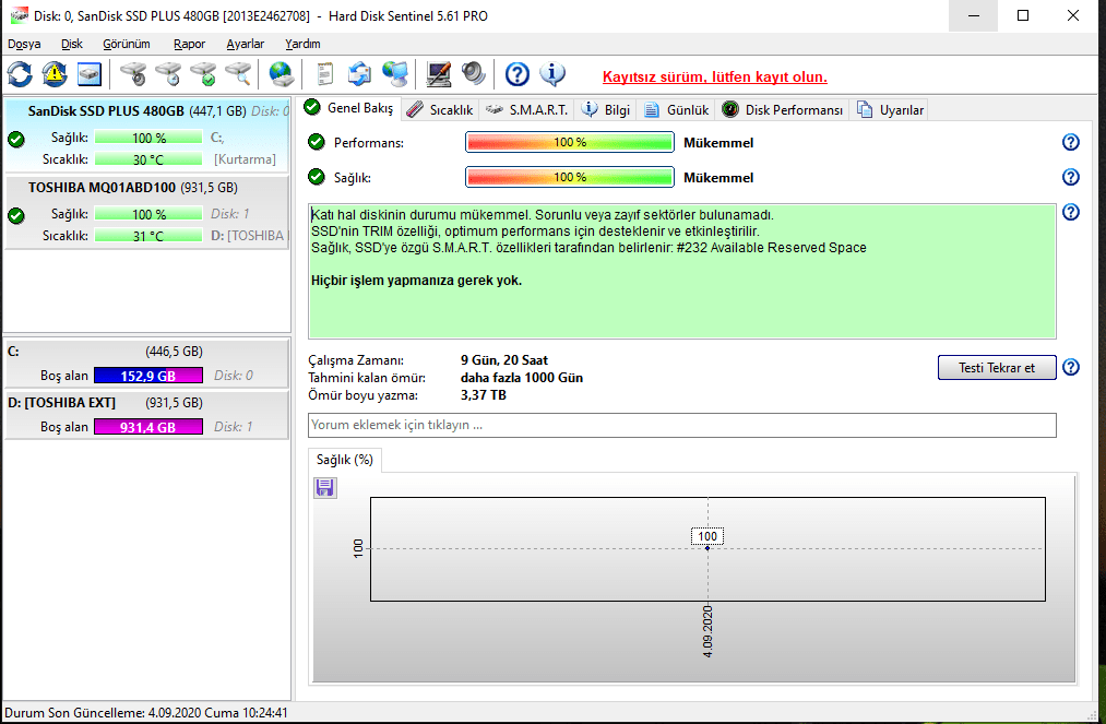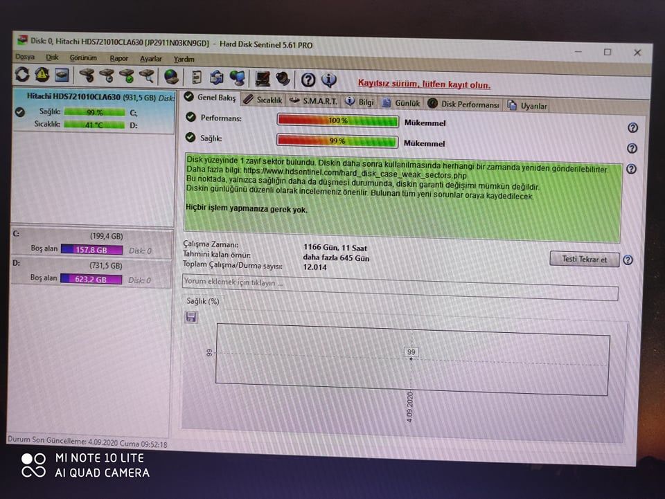 Sonradan hariciden dahiliye çevirdiğim 5400 RPM disk: