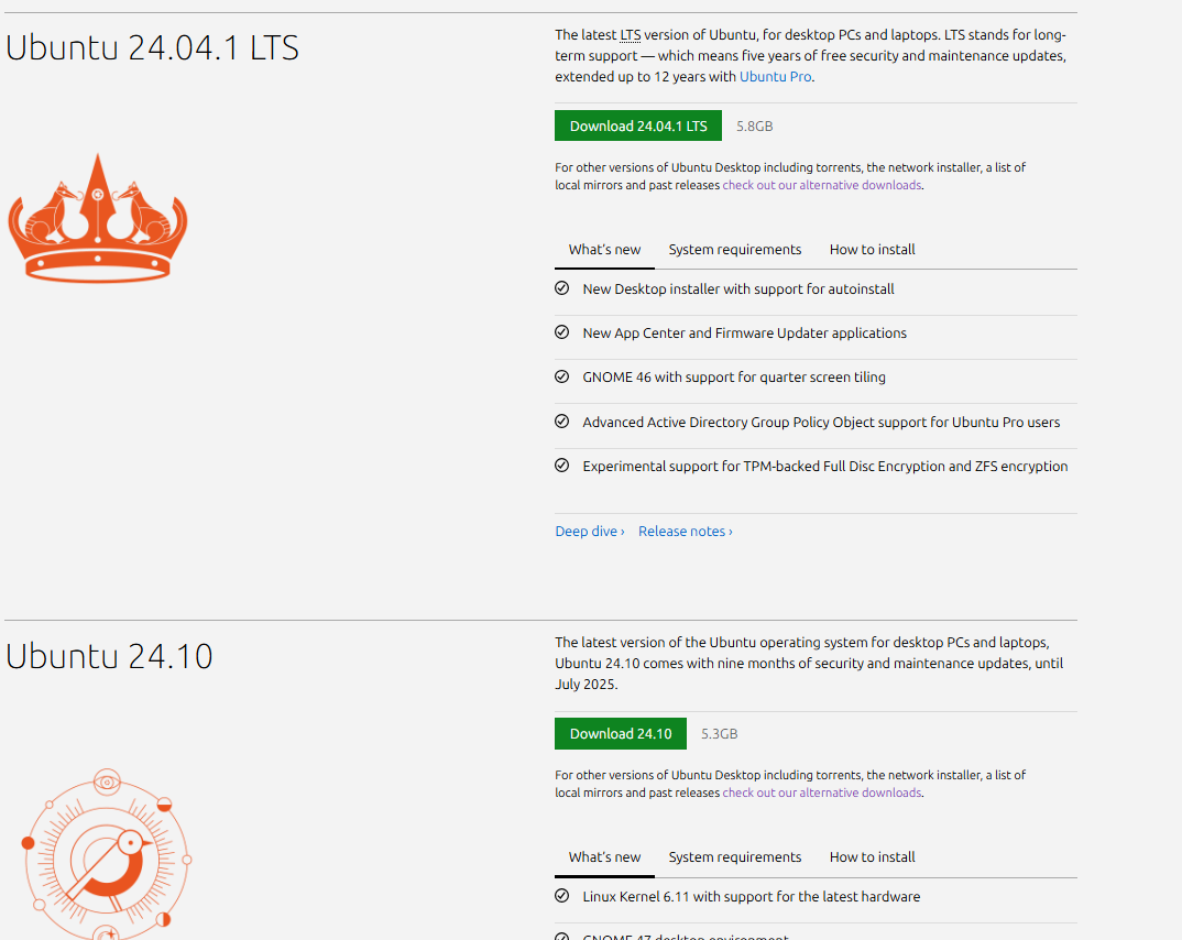 24.04 ve 24.10 arasındaki farkı genel olarak paketlerin güncel olup olmaması diyebilirim ikisi de stabil sürümdür.