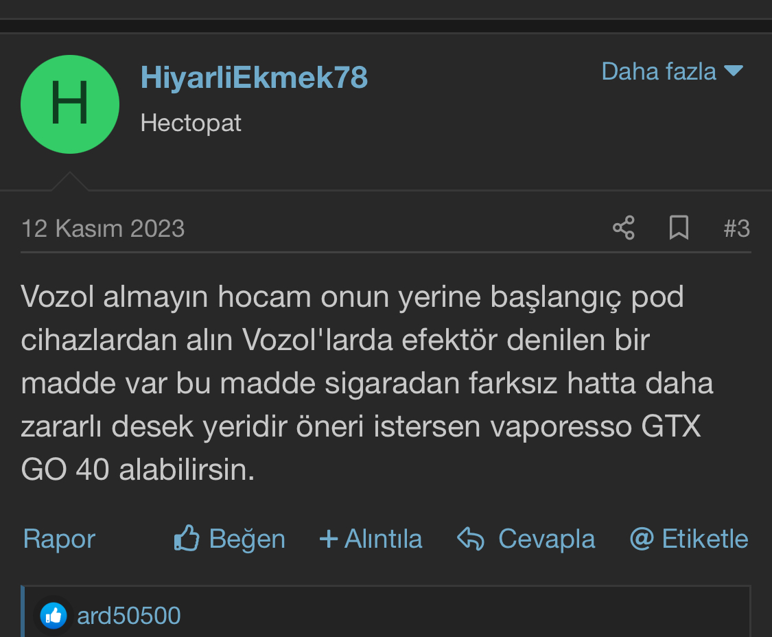 @tnysoprano hocam yardımcı olursanız sevinirim. @HiyarliEkmek78 hocam bir konuya böyle bir şey yazmışsınız doğruluğu nedir ?