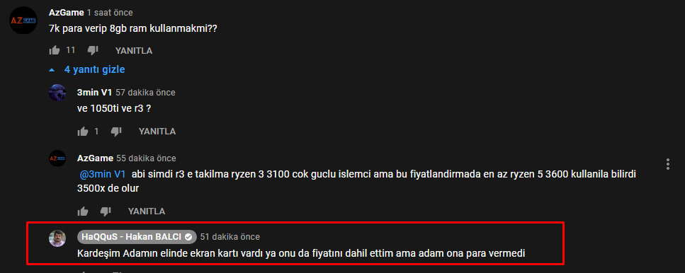 Malesef, kendisi Vatan'da çalıştığı için pek şaşırmıyorum ama azıcık insaf ya, başka bir videosunda RTX 2060'ın yanına Ryzen 5 1600 koyuyor, gerçekten anlam veremiyorum bir insan nasıl bu kadar çıkarcı olur.