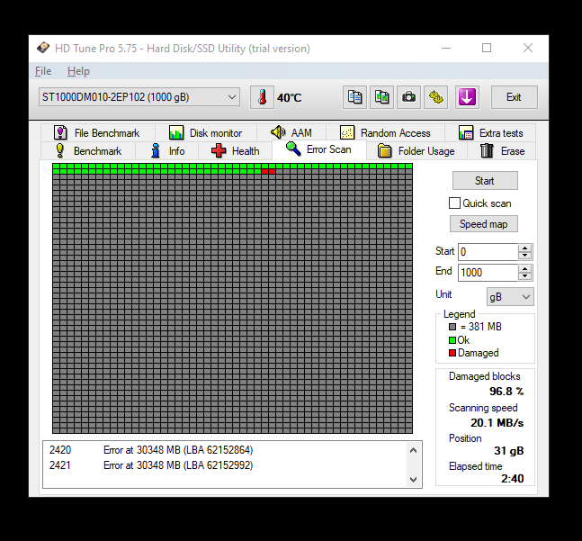 Öncelikle neden bu testi yapma gereği duydum onu açıklayayım. Bu aralar D ve E sürücüleri kendiliğinden açılıyordu, pek sorun etmedim. Bugün BF1 oyununa girmeyi denedim ancak oyunun içi hatalı yüklendi ve bir oyuna girmek istediğimde oyundan attı. Aynı Star Wars oyununda da oldu. Ben de bir test yapayım diye düşündüm. Daha 2 yıllık harddiskde kırmızı blok çıktı. Tam olarak ne anlama geldiğini bilmiyorum. Ve kırmızı bloklar çıktığında yine D ve E sürücüleri ( hard diski 2'ye ayırmıştım kurulumda) açıldı ve test durdu. Aynı şekilde Windows'un disk birleştirmesini yaparken de D ve E sürücüleri açıldı. Bu nasıl düzelir?