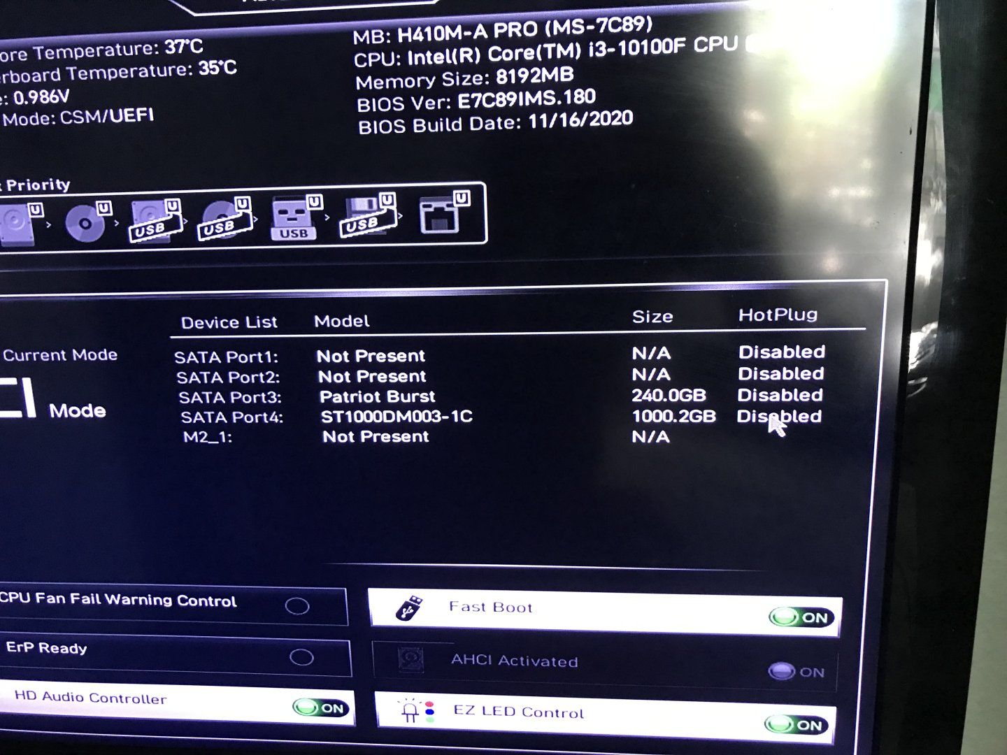 Merhaba Patriot SSD'ye Patriot'un bir programıyla optimizasyon yaptım sonrasında PC hata verip kapandı ve açılırken sürekli BIOS ekranı geliyor ve PC açılmıyor. BIOS'tan bakınca SSD de ve HDD'de disabled yazıyor. Bunu nasıl değiştirebilirim?