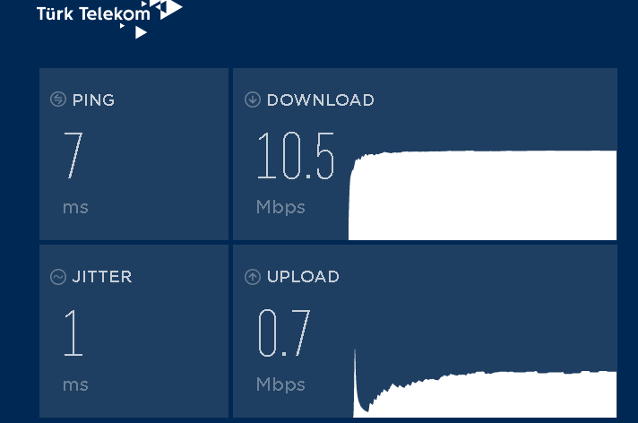Bu da şu an anlık aldığım hız... Paketim 16Mbps iken ortalama 12Mbps alıyordum, 20ye çıkardık 10a düştü arkadaş...