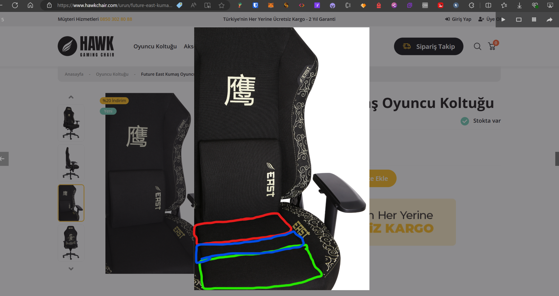 Öncelikle Future East Kumaş Oyuncu Koltuğu | Oyuncu Koltuğu | Hawk Oyuncu Koltuğu bu ürünü alalı 1-1.5 hafta oldu sürekli oturan biriyim ve yeterince deneyimlediğimi düşünüyorum. Kolçakları kesinlikle güzel ve rahatlatıcı özellikle pedler çok mantıklı ve bayağı konfora etkisi var özellikle benim için koldan destek alanlar için bulunmaz nimet gerçekten.