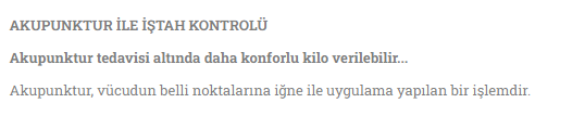Ben obezite falan değilim o kadar değil. O iğneleri yiyeceğime hiçbir şey yemem merak etme.Benim kuzenimde de aynısı vardı bir gün ailesi onu akupunktura götürmüş orada çocuğun sırtına ve kulaklarının oraya küçük yara bandı gibi şeyler yapıştırmışlar içinde de iğne var onlar iştah kapatmak içinmiş işe yaradı mı bilmiyorum internetten baktığımda bunu buldum.Eki Görüntüle 1488017