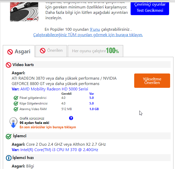 Öncelikle herkese merhaba, PC işinden çok anlamam. Steam'de Need for Speed Most Wanted 2012-32, 25 TL'ye düşmüş, almak istiyorum fakat sistemim çok kötü olduğundan karşılar mı bilmiyorum. Bunun için Can You Run It kullanıyorum fakat her şey tamam da video kartında minimum olmaz diyor. Kaç FPS alırım düşükte?