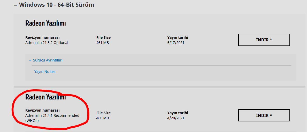 İşaretlediğim yerdeki sürücüyü indirdim.
