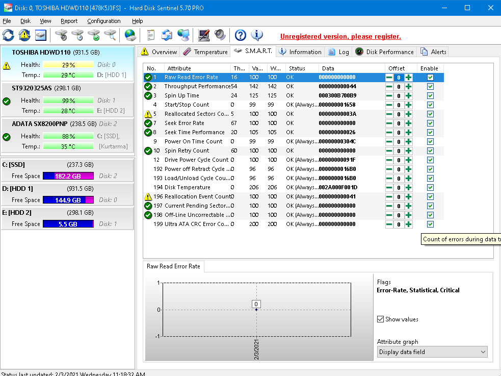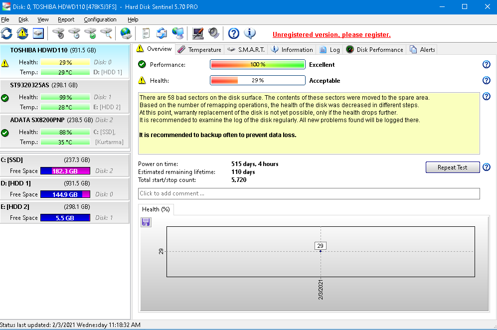 Forumda Hard Disk Sentinel programinin lafi cok dondugu için indirip disk sagligina bakmak istedim ama gosterdigi degerleri gorunce cok sasirdim. HDD'min 110 gun omru kaldigini ve %29 saglik orani veriyor? Ne diyor bu program? Dedigi degerler gercek mi? HDD sorunsuz kullanıyorum bugune kadar hatayla hiç karsilasmadim. Bozuk sektor bile var diyor 58 tane. Sizce bu program dogru mu analiz ediyor yoksa uyduruyor mu?
