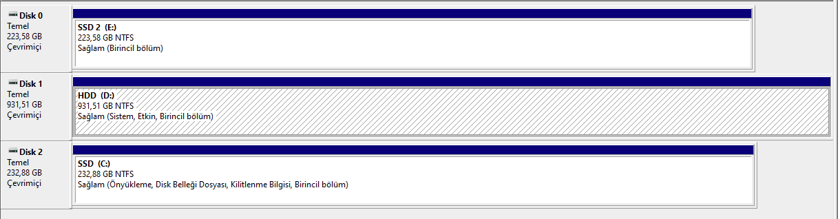 232gb olan ana windowsun kurulu olduğu m2 ssd, 931gb olan HDD, diğeri da sata SSD. HDD'yi 2.bir sata SSD ile değiştirmek istiyorum.