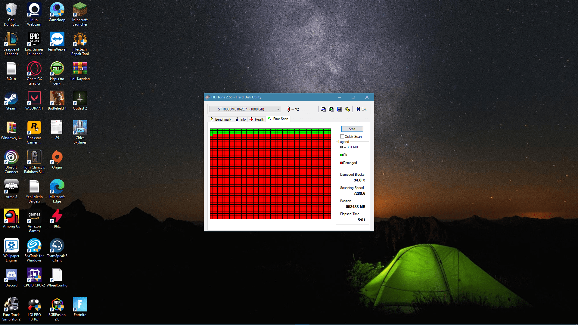 HDD"m bad sector taraması yaptım ve bayağı bir kırmızı alan gördüm. Oyundan atmalar, düzgün çalısmama gibi sorunlar var. Bu olmadan 1 gün önce bir sorun yoktu. Bir günde bu hale geldi.