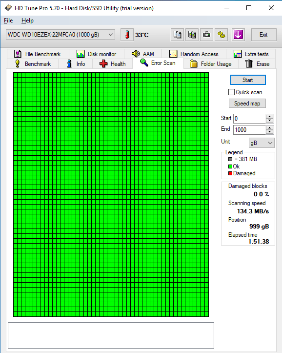 İlginçtir ki HDTune ile okuma testi yaparken yeşil grafikte ufak tık tıklar haricinde ses çıkmadı fakat en son ne olduğunu bilmediğim sarı noktaları doldururken dediğim sesle karşılaştım.