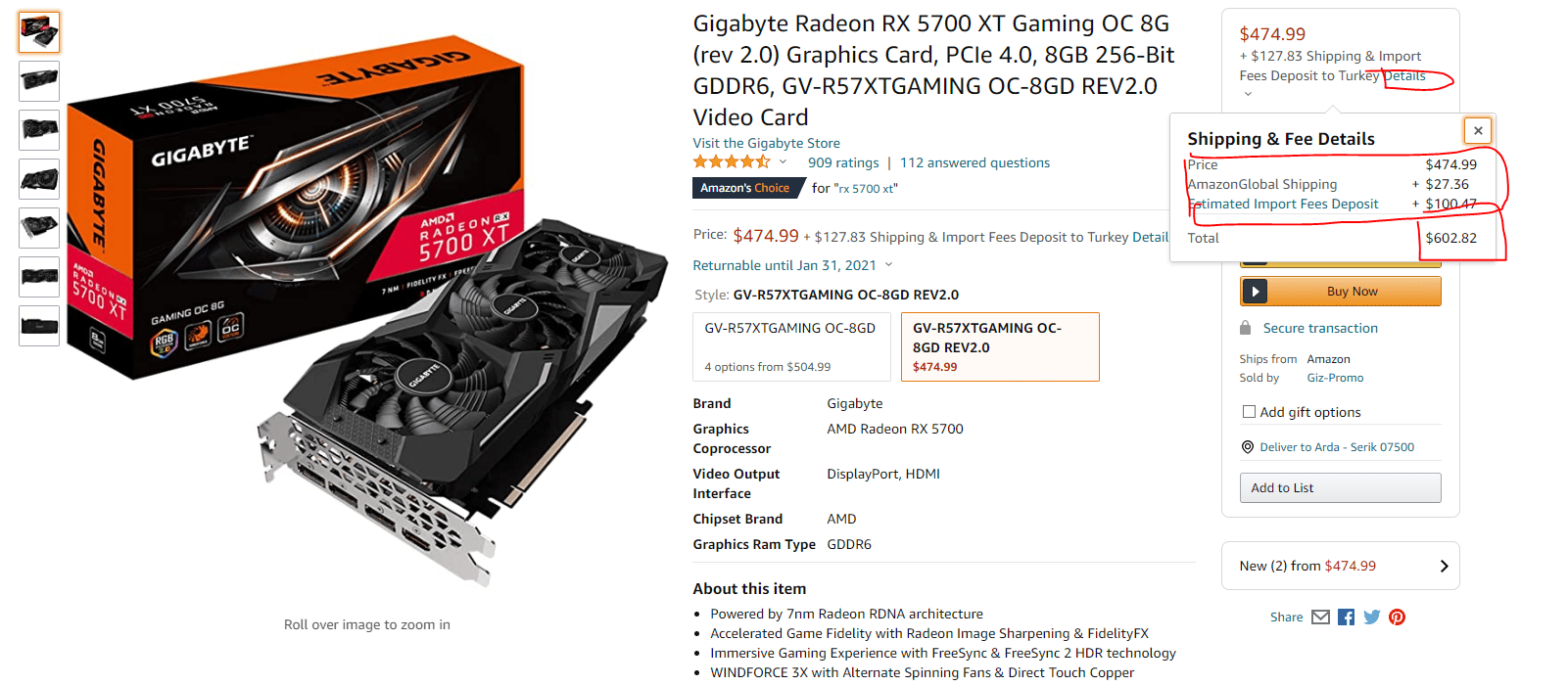 Vergiyi nerede öğreniyoruz?Vergili halde alıyorsunuz. Gümrükte takılmıyor yani. Kargo ücreti çok fazla olabiliyor.