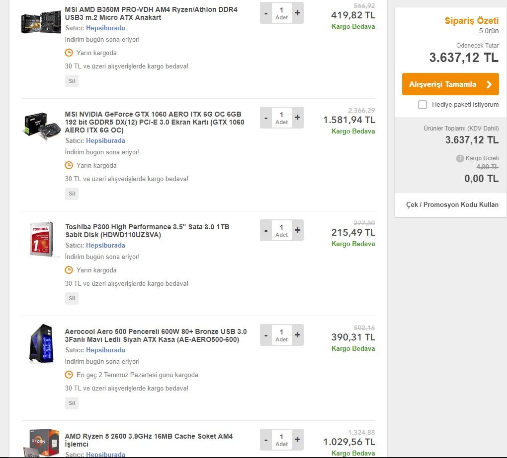 Toplam 4.190 tl yapıyor. Bu şekilde olursa işlemci için anakartı bios update yaptırmak zorunda kalacaksınız unutmayın. Yada olmasa iyi olur ama işlemciyi AMD Ryzen 5 1600 = 853 tl olarak değiştirebilirsiniz.