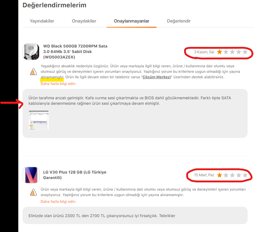 Hepsiburada'dan almış olduğum içinden garanti belgesi dahil olmayan WD Black marka HDD 2. el olup ve 0 olarak gösterilip arızalı olarak tarafıma ulaştı. Lakin asıl sorun bu değil, tamam ürün şans eseri arızalı gelebilir. Lakin şu kısma dikkat edin; Hepsiburada'nın ürün değerlendirme kısmındaki insafsızlığı ve burada söyleyemeyeceğim o kelimeyi bizzat size fotoğrafla göstermek istiyorum. Hiçbir şekilde olumsuz yorumları umursamayan, yayınlamayan bu şirketten hiçbir ürün almanızı tavsiye etmiyorum. Bunun adı üç kağıtçılıktır, halsiyetsizliktir.
