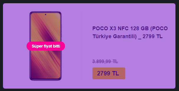 Merhabalar saat 9 hepsburadada POCO X3 NFC Turbo indirime girecekti (sözde)