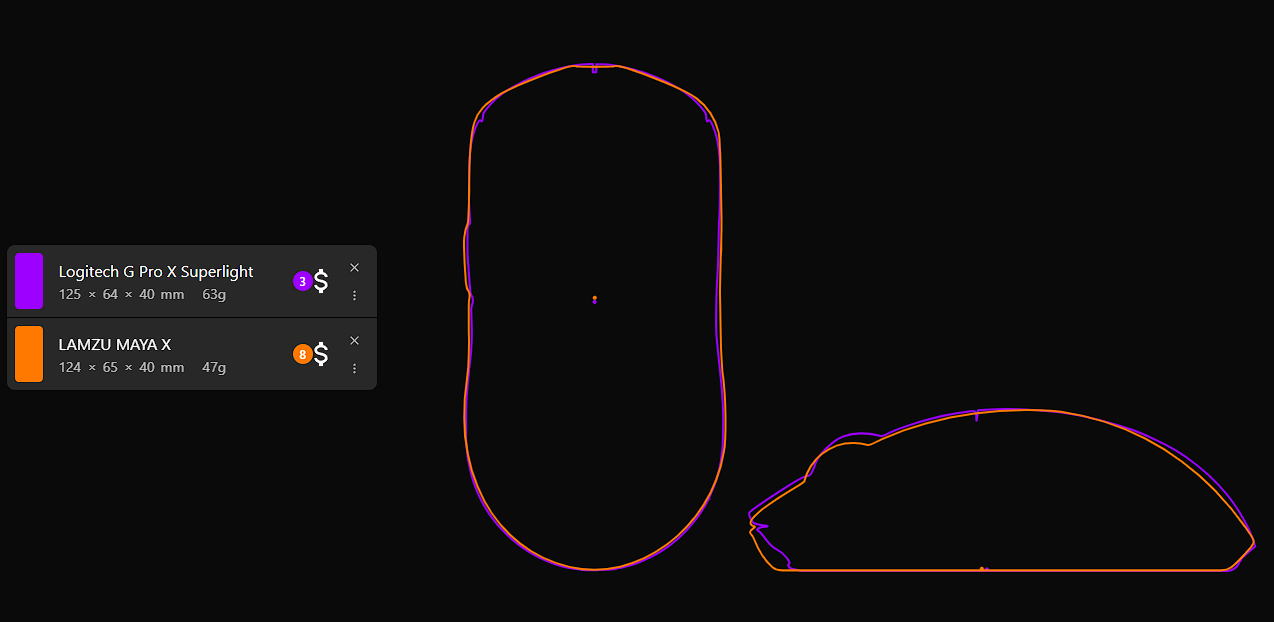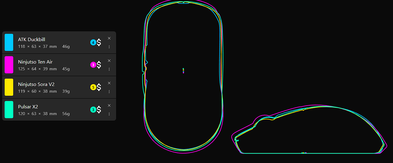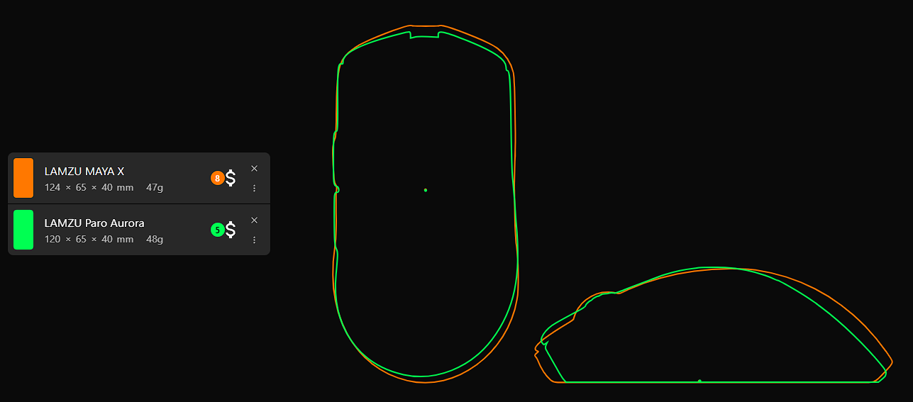 Bu bütçede Lamzu Maya X, Inca, Paro Aurora ve Atlantis Mini modelleri PixArt PAW 3950 sensör ve Nordic NRF52840 MCU kullanmaktadır. Form faktörü olarak; Maya X GPX şekline (shape) sahip, Maya X simetrik, Paro ise ergonomiktir. Ayrıca Lamzu Paro optik encoder barındırır. Inca modeli claw (pençe) tutuşu için gayet iyidir. Palm (avuç içi) tutuş içinse Waizowl OGM Pro 2 uygun bir tercih. ROG Keris, AimPoint Pro sensör ve NRF52840 MCU ile geliyor; tıklama gecikmesi (Click latency) olarak rakiplerinin gerisinde kalsa da marka tercih etmek isteyenler için bir seçenek. Ninjutso tarafında ise PixArt AIMNINJA (PAW 3950) sensör ve PixArt MCU bulunuyor. Son olarak Hitscan Hyperlight, PixArt PAW 3395 sensör ve Nordic NRF52840 MCU ikilisini kullanıyor.
