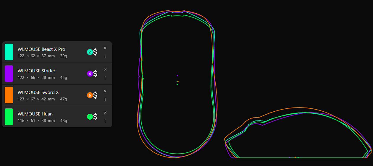 WLmouse Beast X Pro: PixArt paw 3950 sensör ve nordic NRF52840 mcu kullanıyor. Claw tutuşa çok uygun; @Hallelujah_0 hocamız bu modeli kullanıyordu, kendisinden yorumlarını bekliyoruz.