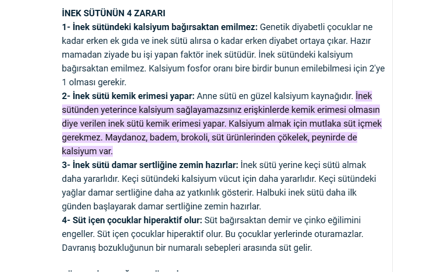 Her gün yeteri kadar içersen kemik erimesi yapmak yerine kemiği güçlendirir. Kalsiyum kaynağı olduğu için kemik erimesini en iyi engelleyen şeylerden biri süt ürünleridir. Senin dediğin olay sütün yapısını değiştirince oluyor. Normal şartlarda osteoporoz vs. olmaz. Nerede gördüğünü merak ettiğim için gittim internetten baktım. Herhalde fotoğrafta koyduğum yere baktın başka yerde bulamadım çünkü. Burada anlatmak istediği kalsiyum için tek başına süt içmeyin başka kalsiyum içeren gıdalar da tüketin.