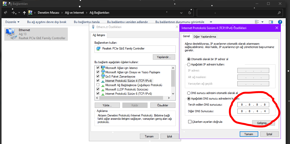 Kontrol ettim 8.8.8.8Bilgisayarla giriyorsan: