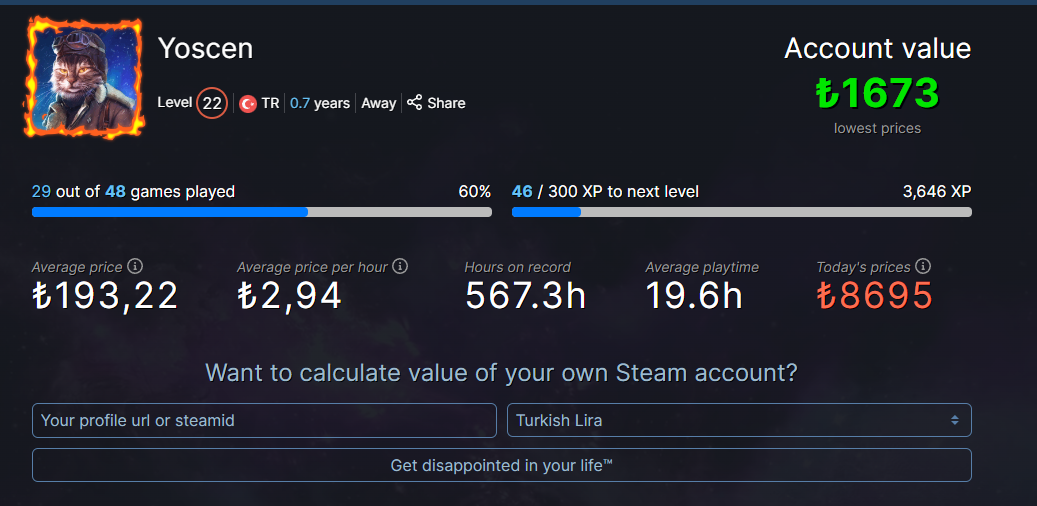 Steam Hesabın değeri ne kadar?