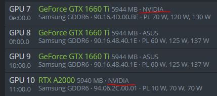 1660ti Asus ve Gainward kartlarım bu şekilde. Ek olarak PNY A2000 kartım. @sens4k @porsuk26
