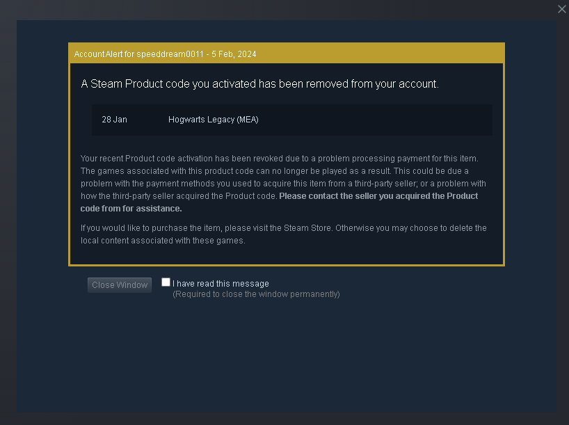 Paylaştığınız linkteki üründen satın alan kişilerden birisiyim. 8 gün oldu ve bugün oyun hesabımdan kaldırıldı. Bynogame'e durumu aktardığımda dağıtıcının kendileri olmadığını, bu yüzden satıcıyla iletişime geçmem gerektiğini söylediler. Satıcıya durumu yazdığımdan 10 saniye geçmeden siparişimi iptal ettiler ve iadeyi bakiyeme yansıttılar. Dersimizi almış olduk 😁