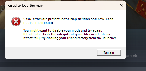 Çözüldü HOI 4 "failed to load the map" hatası