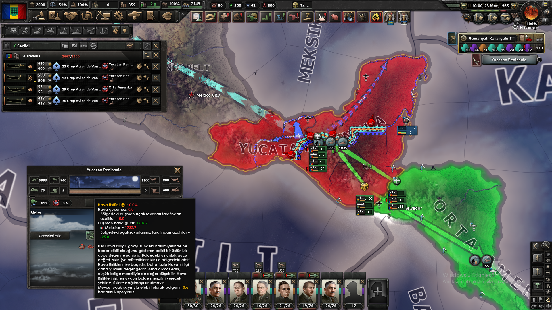 Hocam oyunda Romanyayım ve Meksika ile savaşıyorum ve oraya yakın tüm hava üslerine uçak koydum fakat yinede alamıyorum.İyi oyunlar dilerim hocam.