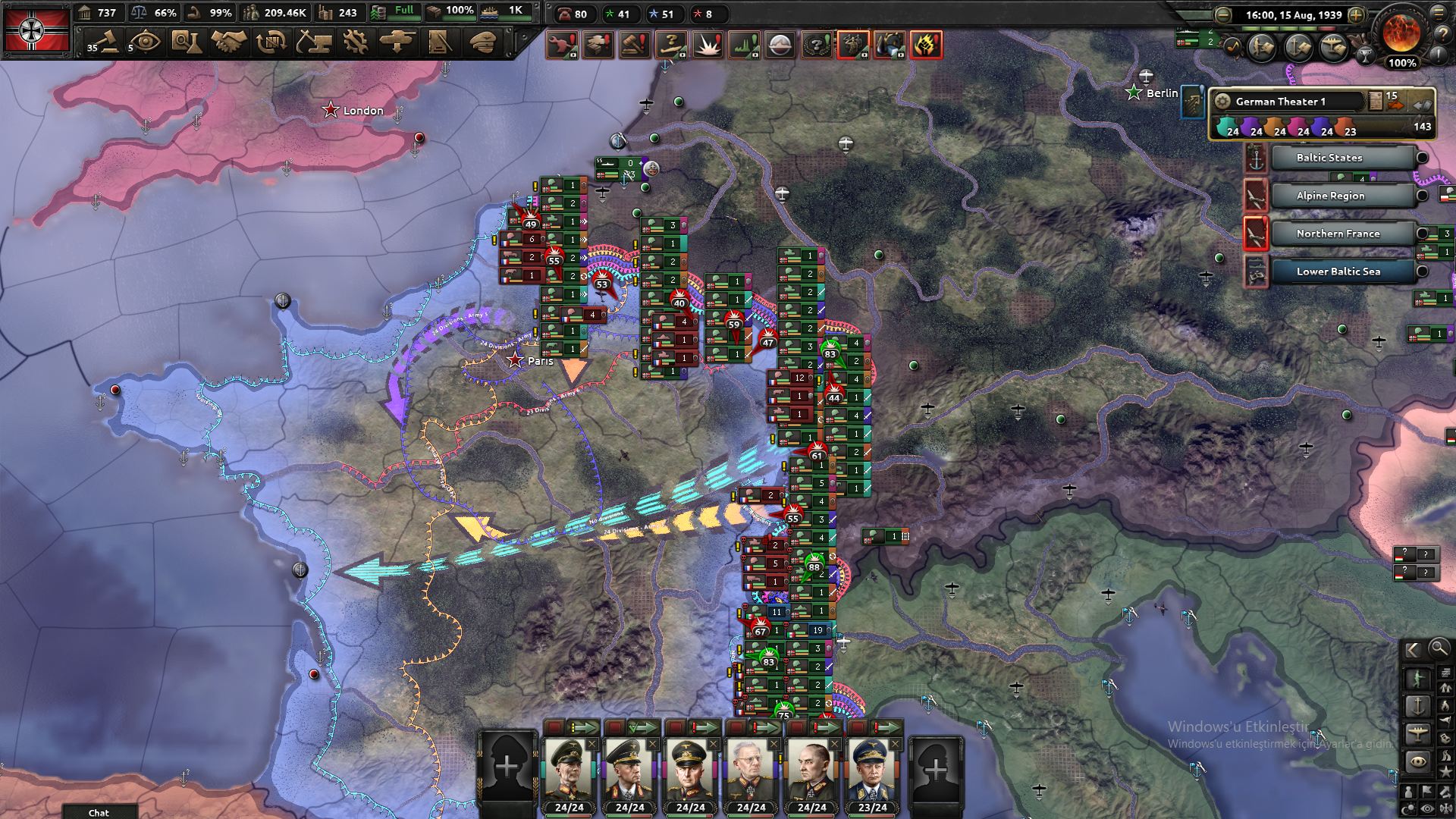 Açıkçası ben bu fotoğrafa bakarak kanser oldum. Manpower kalmamış, maginot hattına saldırıyorsunuz, muhtemelen hava üstünlüğü sizde değil, atlı birlikler var, field marshal yok ve tanklar rastgele yerlerde savaşıyor. Bana kalırsa en önce yapmanız gereken şey ordunuza field marshal ekleyip orduyu generallerden değil field marshaldan kontrol etmeniz.