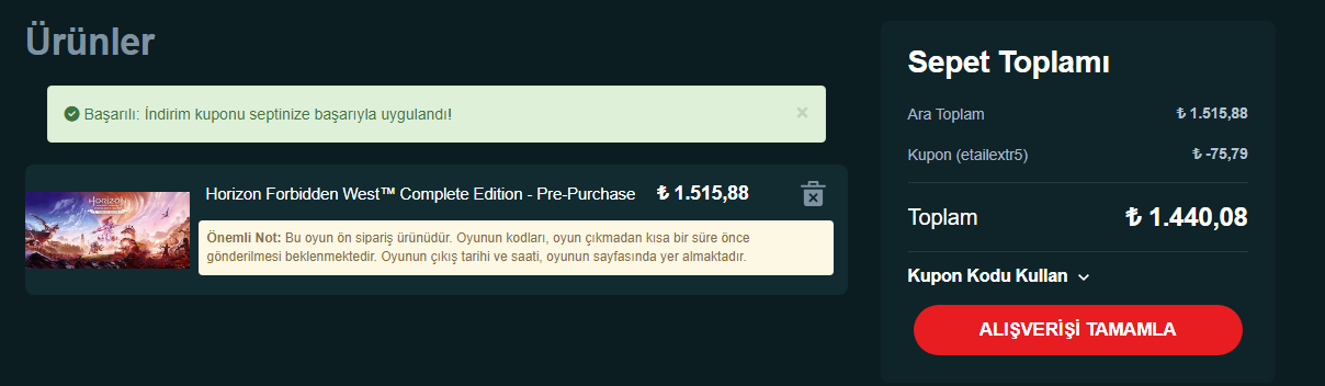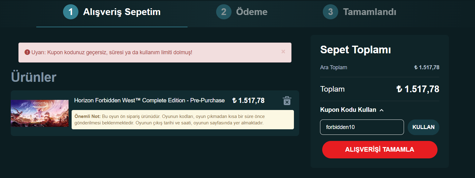 Bak, sen dediğinde fark ettim, meğerse sterlin olarak satılıyormuş. Ah be, yine ucuz bulamadık. Neyse, eTail sitesini bekleyeceğiz. Uyarı için teşekkürler.CDKeys güvenilir fakat Türkiye'ye satış yapıyor mu belli değil. İstiyorsanız almayı deneyebilirsiniz. Bu arada CDKeys'te 40 Euro değil 40 İngiliz Sterlini. Yani 1511TL. Başta bende 40 Euro sanmıştım fakat sistemi Dolara geçirince 50 dolar yazısını görünce Dolar ile Euro arasında bu kadar fark olamaz deyip anladım siteye ilk girdiğimde Sterlin gösterdiğini.