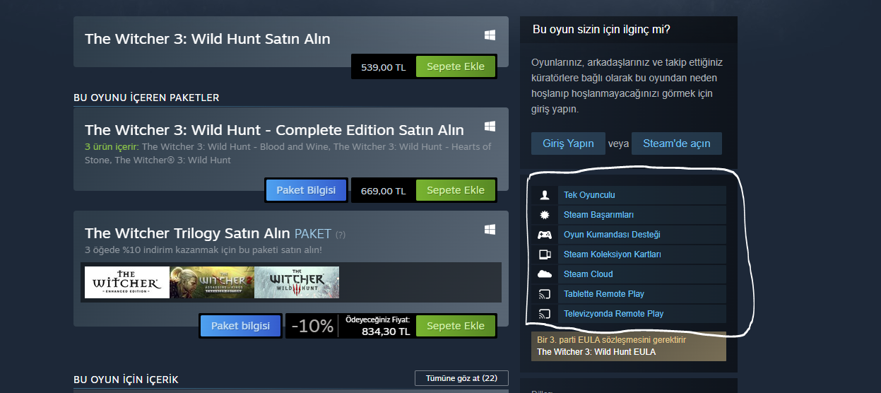 @Lawien @701600 her oyun o içeriği barındırsa bile mağaza sayfasına o içeriği barındırdığına dair bilgi koymayabiliyor. En basitinden GTA SA DE'nin Steam mağazasında sadece "Tek oyunculu" ve "Kontrolcü desteği" var gibi gözüküyor fakat başarı sistemi de var. Yani sadece o kısma bakarak hareket etmeyin. Firma oraya bilgi eklemek zorunda değil.