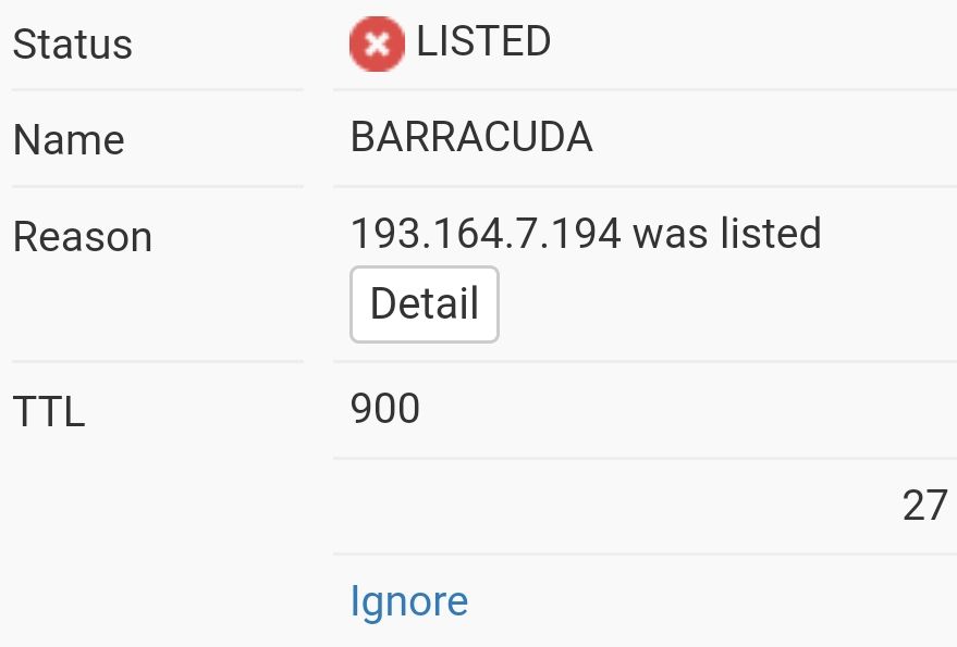 Ayrıca Kayizer'in IP adresi de MailSpike tarafından karalisteye alınmış. Bu yüzden hiçbir Outlook e-posta adresine mail gönderilmiyor.