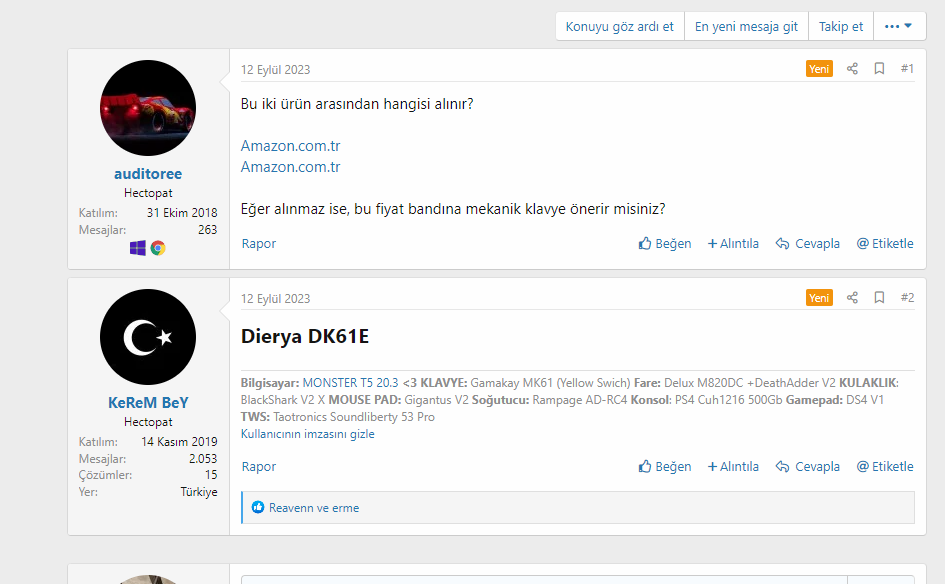 Peki 1000 lira bandına blue veya red başka bir öneriniz var mıdır? %60 klavye biraz zorlayabilir.