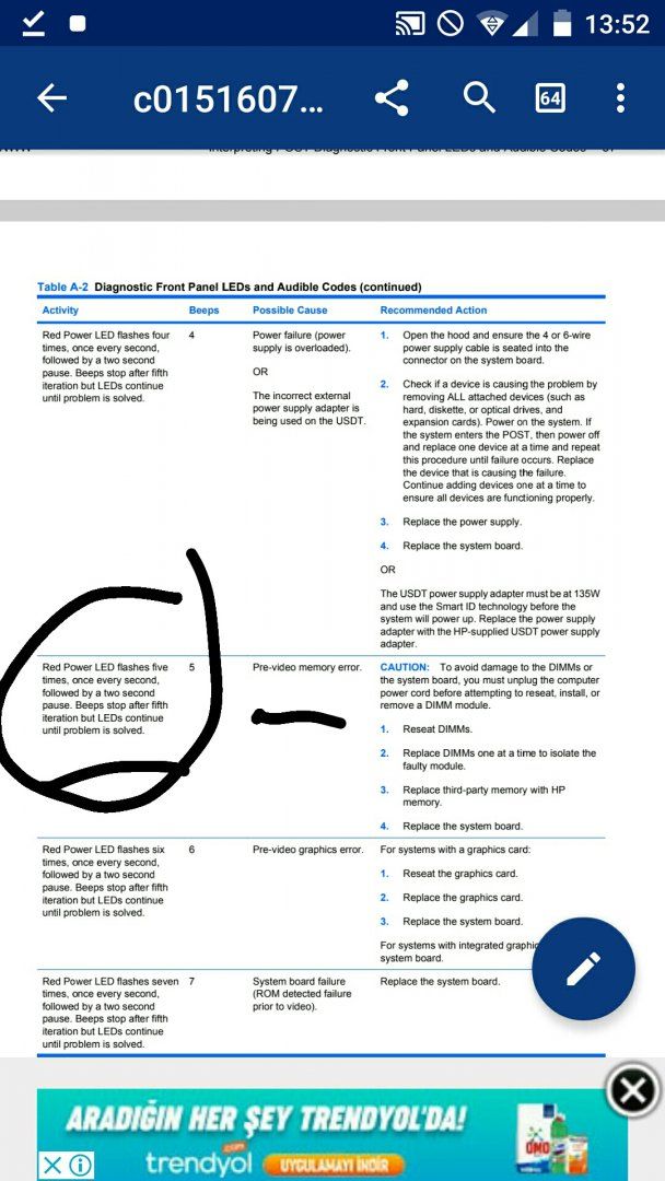 Demin bir şey fark ettim iki rami birden takınca o bip sesi 5 5 devam ediyor ve güç tuşu kırmızı oluyor sadece ramlarin birini takarsam guc tuşu Beyaz oluyor yanıp sönmüyor hem 5 beep yapip duruyor