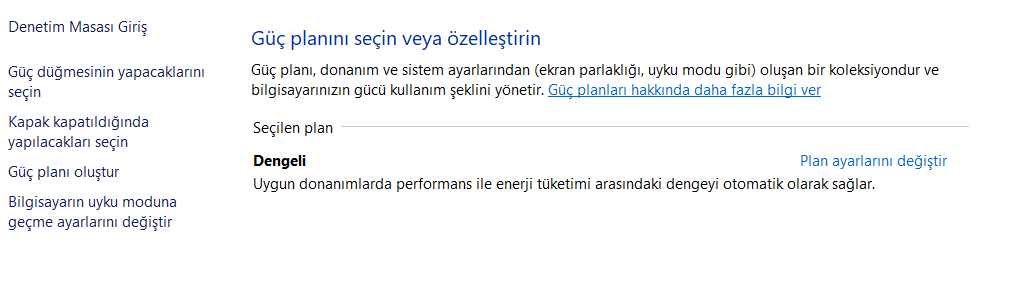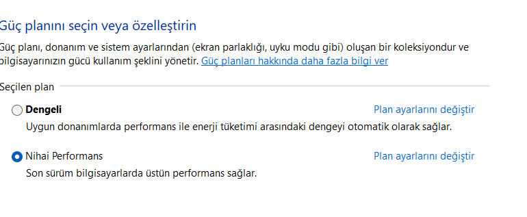 maalesef o şekilde çalışmadı hatta windowsu 11 pro ya geçirdim şimdi. cm de nihai yazıyor ama denetim masasında dengeliden başka seçenek yok