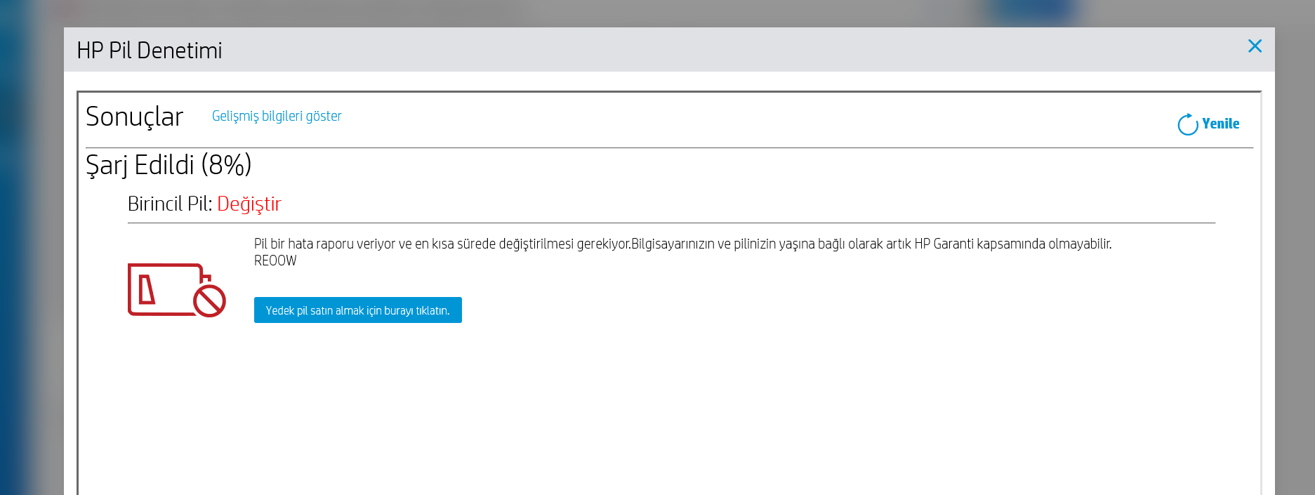Benim HP Omen 15 serisi bir laptop bilgisayarım var ama ne yazık ki tam modelini hatırlamıyorum. Son günlerde bataryası neredeyse tamamen bitti sadece %8 doluyor, bazen %0 ile devam ettiğim bile oluyor. Bilgisayarı açtığımda batarya kapasitesi çok düşük, bataryayı değiştirmek isteyebilirsiniz yazısı içeren 601 kodlu hatayı alıyorum. İnternetten araştırdığımda batarya bitmesi HP bilgisayarlar için kronik bir sorunmuş özellikle Omen serisinde batarya ömrü çok kısaymış.