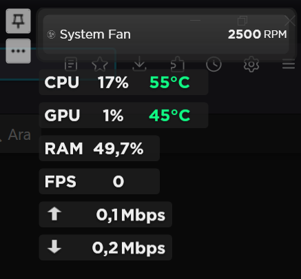 Overlayda gözüküyor ama oyuna girince çıkmıyor. Bende açma tuşu Shift+F2 bu tuşlara basınca da ya hiçbir şey olmuyor ya da parlaklığı azaltıyor. Fanı ben balanced modunda Auto da kullanıyorum daha rahat oluyor benim için. FPS limitleme ise bende kapalı durumdaymış. Game pass olayına baktım da sizin attığınız resimdeki yere basınca xbox'a atıyor ama hiçbir şey gelmiyor. Galiba yok ya da beceremedim